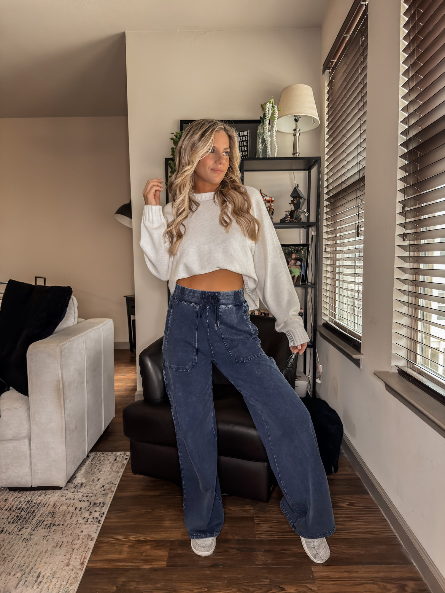 This cropped midi sweater features a round neck and dolman sleeves for a relaxed and stylish look. The cropped length adds a modern and trendy touch to the design. The dolman sleeves provide a comfortable and loose fit, perfect for effortless chic styling. With its versatile round neck, this sweater can be easily paired with different bottoms for various outfits. The cozy knit fabric makes it a great piece for staying warm and fashionable in cooler weather. Overall, this round neck dolman sleeve cropped sweater is a must-have for a casual and chic wardrobe.
